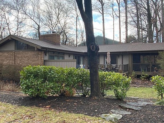 Large custom contemporary with a lot of mid-century modern flair. New hardwood floors in family room, dining room and hallway and new carpet in all four bedrooms. New roof in 2021. The huge (16.5' x 19.5') step-down living room off the foyer boasts a vaulted ceiling with exposed beam, hardwood floors and lots of windows. The step-down family room also has a vaulted ceiling with exposed beam, raised hearth wood-burning fireplace and an offset room with a cute wet bar. The chef's kitchen has loads of cabinetry and granite counter space, high end stainless appliances, wine refrigerator, food warming drawer, an exposed brick wall and beautiful accent lighting all around. The bedroom wing has three large secondary bedrooms with lots of windows, large closets and recessed lighting in each and a hall bathroom with a dual sink vanity, large linen closet and laundry chute. The primary bedroom also has a vaulted ceiling with exposed beam and sliding doors to the open deck. The huge primary closet is to die for with built in shelves, dresser and vanity. There are three sliding doors leading from the house to the outside deck and a big screened porch with loads of room for seating and tables. The lush landscaping is strategically planned for having flowers throughout the year. There is a partial basement, clean and dry with abundant storage, all utilities and laundry. 2021 Roof. Walking distance to Clemens Crossing Elementary and Pool. Don't miss this one!