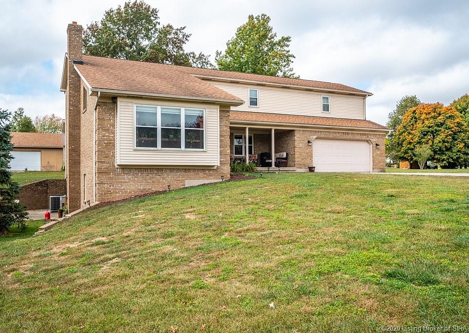 There is so much space in this awesome home, located in the established Meadow Oaks subdivision and the award winning Floyd Central school district. Features of this all brick home include vinyl flooring throughout main level, 3 extra large bedrooms with walk-in closets, a large bonus room in the fully finished, side walkout basement that has been used as a 4th bedroom in the past(no egress window), 2.5 baths, a spacious living room and an additional family room on the main level, an airy eat-in kitchen with island, open design fully finished great room in the basement, an attached oversized 2 car garage, a wide driveway for more parking and an additional 20x28 utility shed, all sitting on three-quarters of an acre. A lot of charm in this property. This is certainly not a "cookie-cutter" home.