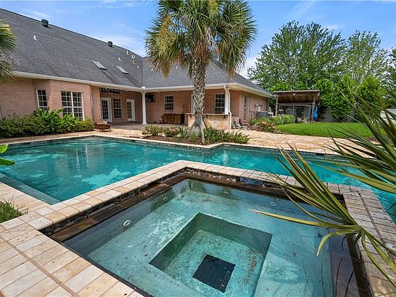 LIVING IS EASY in this one-owner custom built Tennyson Oaks home on landscaped half-acre lot with resort-styled pool and hot tub, oversized 3-car garage and a most versatile spacious floor plan like no other! A grand entryway off circle drive in front leads into an open concept sunken living area with sparkling windows that stretch to the elevated ceilings and a formal dining room that can seat a crowd. The size and amenities offered by the amazing kitchen may take your breath away with unbelievable storage options, high-end appliances like double ovens including 6-burner Dacor gas cooktop, dual disposals, wine fridge, Bosch dishwasher, center prep island with third sink, breakfast bar and the list goes on... into the massive keeping room with wood flooring, raised gas fireplace, vaulted ceiling, captivating eclectic light fixture and wet bar. The downstairs owner suite with gas fireplace and space designed for in-room office is connected to an immense bath with double vanities, walk-in closets, separate shower and jetted tub. Floor plan includes primary and 3 other bedrooms downstairs. Another massive (5th)bedroom, with full bath on second floor could easily transition to a media room, game room, exercise center or other use, sports a full array of built-ins and multiple storage areas. Seller is providing $7500 allowance for flooring replacement upstairs and in primary bedroom. Invite the whole gang to revel and relax amidst the palm trees in the fully fenced landscaped backyard with its enormous pool/hot tub, outdoor kitchen with slate and travertine patios, Blaze gas grill/double burner cooktop and more. Other amenities include irrigation system in back/front yards and flower beds, dog yard, underground drainage, pool heater, pergola and so much more open yard for every seasonal sport. 3 Trane HVAC units (gas heat), 2 hot water heaters, 3 attic entrances, alarm system, powder room with access to backyard and architectural shingle roof age appx 11.