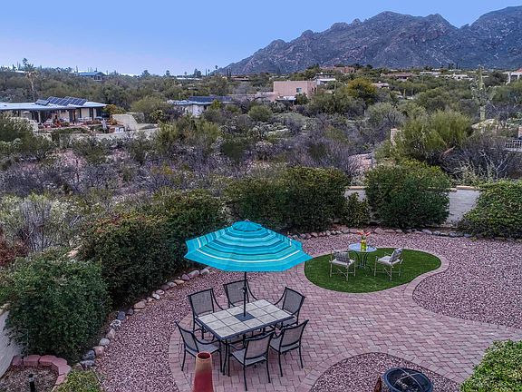 Catalina Foothills charming delight! 3 bedroom, 2 bath luxury ranch home with loads of updates, mountain views, and 2 car garage. Kitchen boasts LED recessed lighting, stainless appliances, granite and butcher block counter tops with coffee/wine bar. Open floor plan with bonus office/pantry off kitchen. A great home to entertain guests, with a large covered patio, faux grass, hardscaped with pavers, drip for vegetation, and al fresco dining for dozens of people. Remodeled ensuite master bath. Custom wrought iron front entry door. Large storage room inside garage. Flush mounted sound system in kitchen/ living and patio areas. Catalina Foothills School District, close to La Encantada, grocery stores, and restaurants.