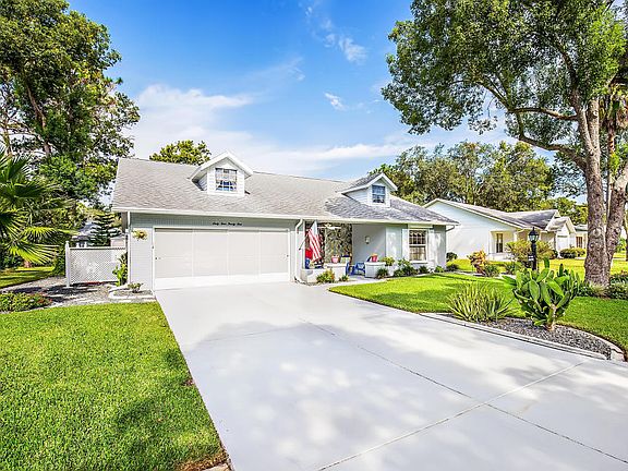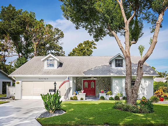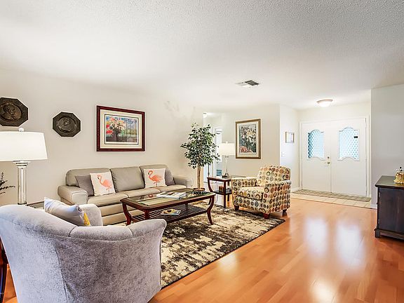 Welcome to your updated Timber Pines home. The main living space is Beech Cherry wood flooring(2011), tile in the wet areas & carpeted bedrooms(2016). Kitchen w/breakfast nook has granite counter tops, recessed lighting, brass hdwe & newer appliances(2014). Lower cabinets have slide outs. Bonus area currently used as office/dining rm. Master bath updated 2013/guest bath 2014. Spend evenings on your front porch with ceiling fan, allowing for outside enjoyment year round. Add'l entertaining space includes a patio in the backyard. Garden & flower beds create your own oasis. The exterior has been newly repainted. Roll down hurricane shutters included. The yard is irrigated by well (savings on water bill annually). Roof 2010. Don't miss out on this gem