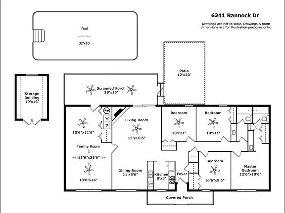Move in ready 4 bed/2 bath ranch style home with upgrades/updates to include: paint, carpet, and laminate flooring. There is also a large screened in porch and in-ground pool with cover(not shown in pictures). The home also has a nice storage shed.