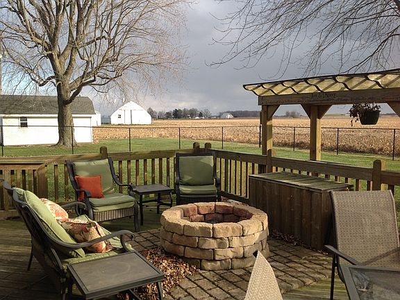 Quiet, private 3 Bedroom 2.5 Bath Brick Ranch Home built in 1969 on one acre with mature trees and many perennial flowers. The best of country living, surrounded by corn fields one year and soybeans the next while living only 1/2 mile from 931. The fenced backyard features a large, sealed deck with fire pit. A minibarn has heat and lighting for a possible workshop, large enough for riding mower, snowblower and many Christmas decorations. This home features a unique entry way w/ curved wall that leads to the Family Room boasting a large white brick wood-burning fireplace. A convenient breakfast room looks out onto the beautiful deck. Great for entertaining! Kitchen has all appliances, approximately 6-7 years old and lots of storage with pull-out shelving. From the Dining/Family Room you have remarkable country views from a quartet of tall windows. Thermal windows keep the home cool in the summer and warm in the winter for very reasonable utilities. Three bedrooms each have double closets, ceiling lights with fans and nearly ceiling to floor windows. Life-time warranty gutter shutters prevent the nasty, risky job of cleaning out leaves. New water conditioner, iron toxic filter, tankless water heater in 2014 ensure clean healthy water. Lawn treated by TruGreen last 2 years with aeration. Top-of-the-line metal Garage Door new May 2017. Tri-County Scools. Just south of Kokomo on county line road. To find it, use Sharpsville in your gps.