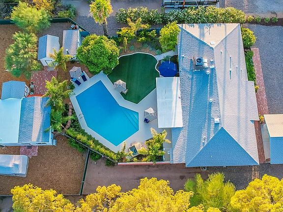 With Love & Imagination, this Harold Bell Wright Estates Treasure has Transformed into a True Desert Oasis. With Vision & Persistence, this Interior Designer's Personal Home has been Comprehensively Renovated. Spacious .56 Acre Lot Offers Endless Versatility. Beautifully styled Double-Brick Ranch Primary Residence a Charming Intro, followed by the stunning ''Turquoise Inn'' Guest House/Vacation Rental. Separate Office, Laundry Room & Outbuildings. The epic Final Act (for now)...the 2023 Renovated ''Cottage'' could be Corporate HQ, Fitness or Art Studio, etc. Historic Designation keep Property Tax remarkably Low. Each Building Completely transformed w/ new Mechanical Systems, Windows, Kitchens, Baths, Flooring, etc. 7000 Sq Ft Flag Lot Can be Split Off. Agent/Owner