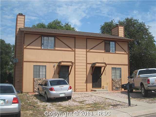 Clean, side-by-side duplex in good condition. Steady rental history, but could be great owner-occupied property. Each unit is 936 sq ft, "townhome" style, with 2 bedrooms, 1 1/2 baths, living room with wood-burning fireplace and hardwood floor, eat-in kitchen includes appliances, and inside unit laundry hook-ups. Exterior freshly painted. Storage shed. Plenty of off-street parking - both front and rear. Fenced backyard. Convenient location close by elementary school, Peterson AFB, shopping, and entertainment.