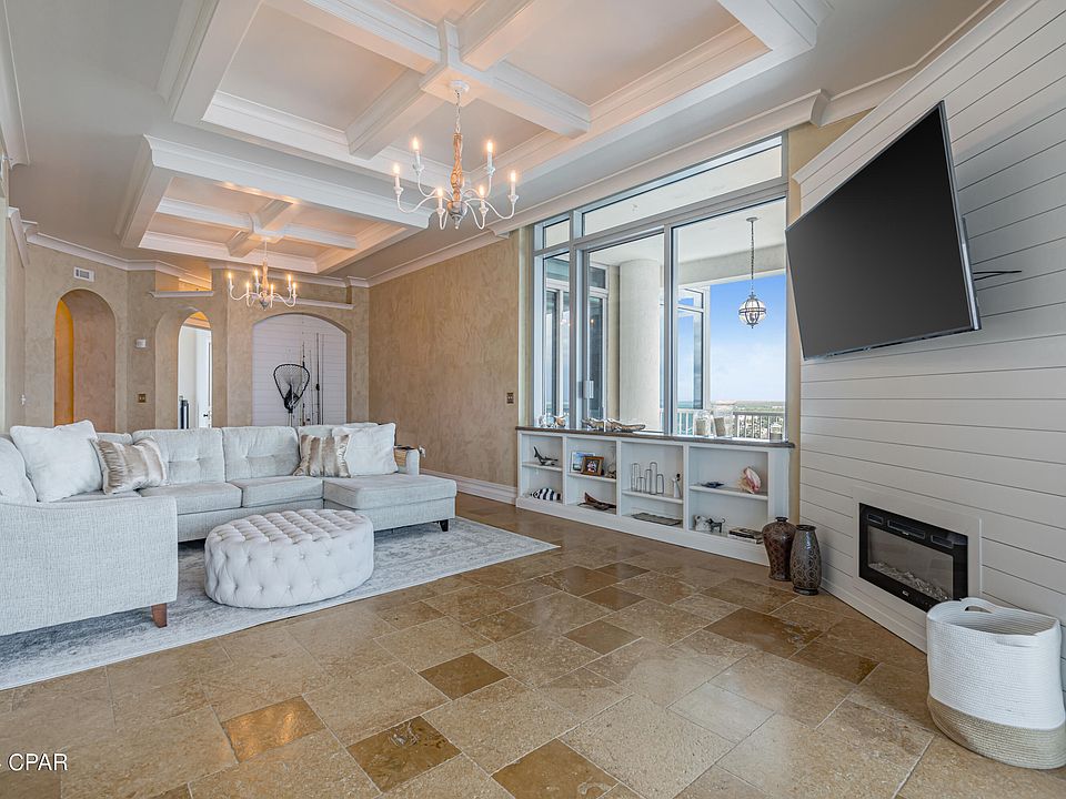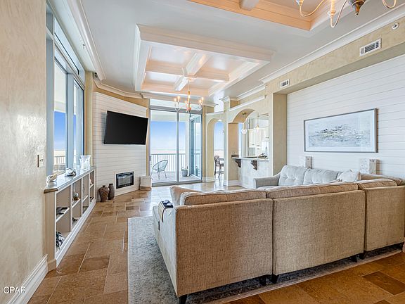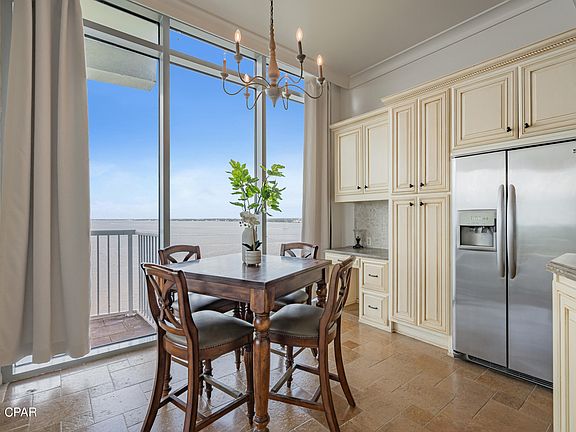 Looking for the perfect blend of luxury, style, and comfort with breathtaking water views? This corner unit on the desirable north side of the building boasts one of the most unique floor plans in the project, complete with a wraparound balcony that offers panoramic views of St. Andrews Bay. Ideal for entertaining or simply savoring the serene waterfront ambiance. The expansive floor to ceiling windows and sliding doors are designated to maximize the spectacular views, flooding the living spaces with natural lighting. Cozy evenings are made even more inviting with a fireplace. For boating enthusiast, the adjacent marina is just steps away. Additional conveniences include a storage unit on the same floor, and a designated parking space (#42). This exquisite unit is fully furnished except for a few personal items. Elevate your lifestyle with this stunning waterfront condo unit. Schedule a showing today!