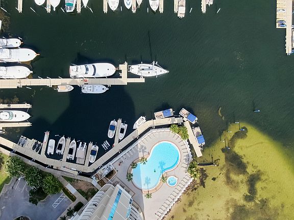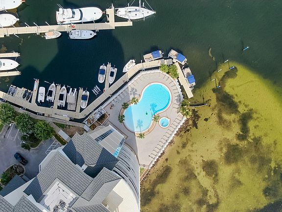 Marina Landing offers resort-style amenities including a bayfront pool and spa, fitness center, picnic area, and boat launch access. One assigned covered parking space is included. This community does not allow short-term rentals, providing a serene and private atmosphere for full-time residents or second-home owners.