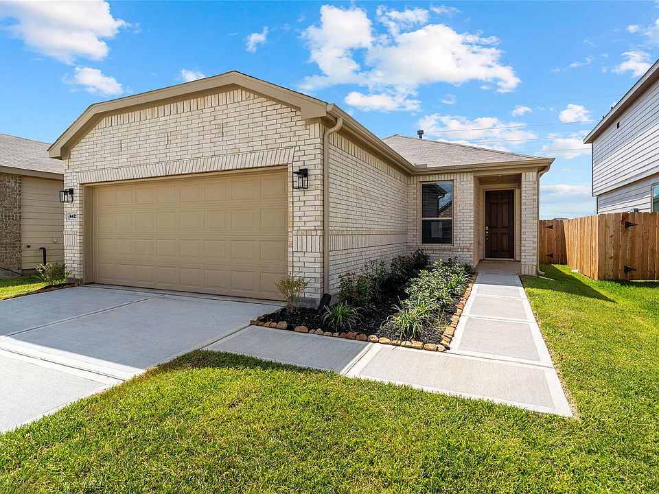 KB HOME NEW CONSTRUCTION - Welcome home to 6422 Kentfield Drive located in the master planned community of Glendale Lakes and zoned to Fort Bend ISD! This beautiful 4 bedroom, 2 full full baths, and attached 2 car garage features stainless steel Whirlpool appliances, 42" Woodmont Dakota cabinets in the kitchen, breakfast bar added to kitchen countertop, dual vanities and separate tub and walk in shower in primary bathroom, vanity with knee space in secondary bathroom, 8' Entry Door, SmartKey and SmartCode Entry Door Hardware, 2" faux wood blinds, gutters on the front of the house, and an extended patio slab in the backyard. This beautiful home with be sold with ALL FURNITURE! You don't want to miss all this gorgeous home has to offer! Call to schedule your showing today!