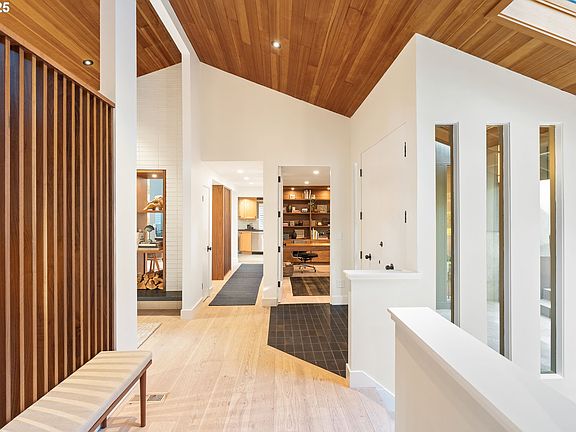 Warm materials, rich design, and exceptional craftsmanship have brought new life to this mid-century modern home, perched in the forested Southwest Hills of Portland. A stunning collaboration between Akos Construction, Outside Architecture and Teal & Scott Design, The Treehouse is both functional and artful—a home that works hard and cultivates vibrancy. Spanning 3,431 square feet, the home offers 5 bedrooms including a photo worthy primary en-suite, 3 full bathrooms, a dedicated office, workshop, walk-in pantry and a 2-car garage. The main level showcases original double doors, classic mid-century window cutouts, vaulted tongue-and-groove ceilings that fills the space with character and light. The addition of custom walnut casework, thoughtful colors and high-end fixtures usher the home into the modern era. Each room opens up to an expansive, IPE deck hosting gathering spaces—hot tub, lounging and outdoor dining. Downstairs, you'll find a generous family room, bar, laundry room, workshop, and three additional bedrooms plus a full bath—ideal for guests, multi-generational living, or creative spaces. Out back, you’ll have the trees at your fingertips and a dog run for your furry friends. Set in a quiet, coveted and friendly pocket near OHSU, SW trails, and all the energy of Hillsdale, this home is a rare find where timeless design meets today’s lifestyle. Come experience The Treehouse—a home rooted in history, elevated for modern living. Make it beautiful and easy with the opportunity to purchase the designer furnishings with the home. [Home Energy Score = 6. HES Report at https://rpt.greenbuildingregistry.com/hes/OR10238233]