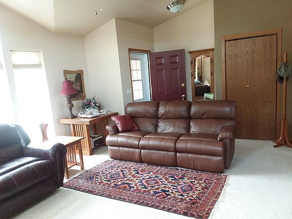 Affordable entry into life at the lakes! This single story year-around home is situated on North Twin Lake, a 450 acre natural lake in Calhoun County, Iowa. The nearest large community Fort Dodge can be reached in 25 minutes. Four-lane Highway 20 is just 3 miles to the south. The move-in ready home is situated across from a narrow strip of a state park so you have a partial lake view. You will be welcomed home by a brick patio area by the front door, nice green space and inviting flower garden. Vaulted ceilings in living room, dining room and kitchen, plus in the master bedroom, give it a unique look. Patio doors from dining room and master bedroom open to a very large deck which remains shaded most of the day. Third bedroom with its base cabinetry along one wall has been used as office. Oversized garage 24 x 30 with cabinets, work bench and laundry sink make a great man cave. Crawlspace is under the full 1526 square feet. The 12 ft by 20 ft storage shed is lined and has a floor with two custom-built shelving units. Great space to store bicycles for use on the trail which is located right through privacy fence gate!