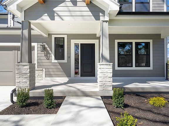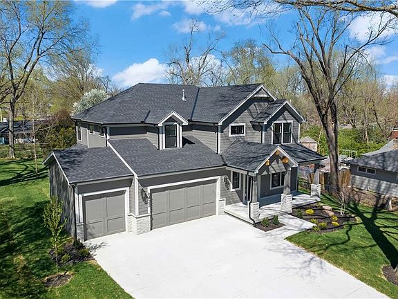 A breathtaking, quality home built by the talented PREMIER Kansas City Builder Lambie Homes! Introducing the two-story "Clover" floorplan nestled in the perfect location! Impressive two-story entry, Great Room with stone-faced fireplace, wet bar that includes a mini-fridge, granite, and built-in shelves. Huge 12’ slider opens to the patio bringing the outdoors inside! Gourmet kitchen with custom cabinets, granite countertops, designer tile, and stainless steel appliances! Gorgeous plank wood flooring extends throughout the main level. Entry and dining area with custom wainscoting! Main level office with large window and French doors. Upstairs you will find a picture perfect Master Suite with great natural light and a huge walk-in closet off the private bath that includes dual vanities, a free-standing tub, and walk-in tiled shower with seat! All bedrooms come with large walk-in closets and bathrooms with quartz counters! Quality features throughout including Anderson windows, Lennox high efficiency HVAC, and MORE! This home sits on a large treed lot (.39 acre!) and includes both front and rear porches to enjoy the seasons! Minutes away from great shopping, restaurants, and parks!