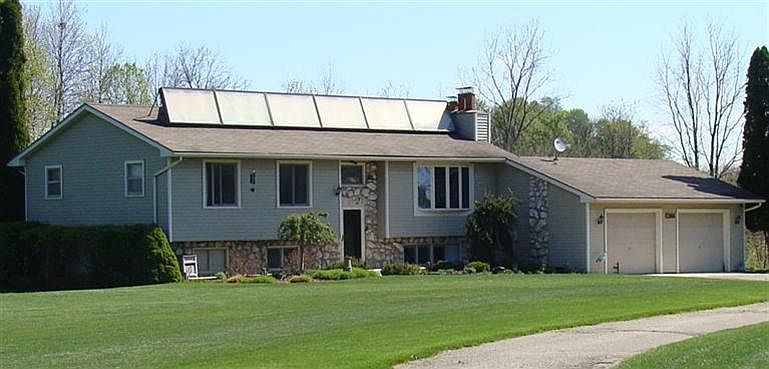 Morrison Lake and golf course views 30 minutes from Lansing and 30 minutes from Grand Rapids. This energy efficient (passive solar heat)4 bedroom home sits on almost 4 acres surrounded by streams and woods. Updated with sub-zero refrigerator, solid cherry cabinetry, countertops and back splash, the kitchen opens onto the gorgeous living room with expansive bay window to view the park-like setting. There is also a master bedroom with extra large closet, second bedroom and a fully remodeled bath with 2 vanities, ceramic tile and extra deep Kohler soaking tub. The kitchen leads out to a large deck, which walks down to the hot tub and patio with pergola. the 2 stall garage is attahced to the kitchen via a fabulous mudroom with large half bath. The lower level features a large family room, 2 bedrooms, spacious full bath, laundry and mechanical room and sliders to patio. This is truly a must see home, perfect for commuters, only 30 minutes from GR or Lansing.