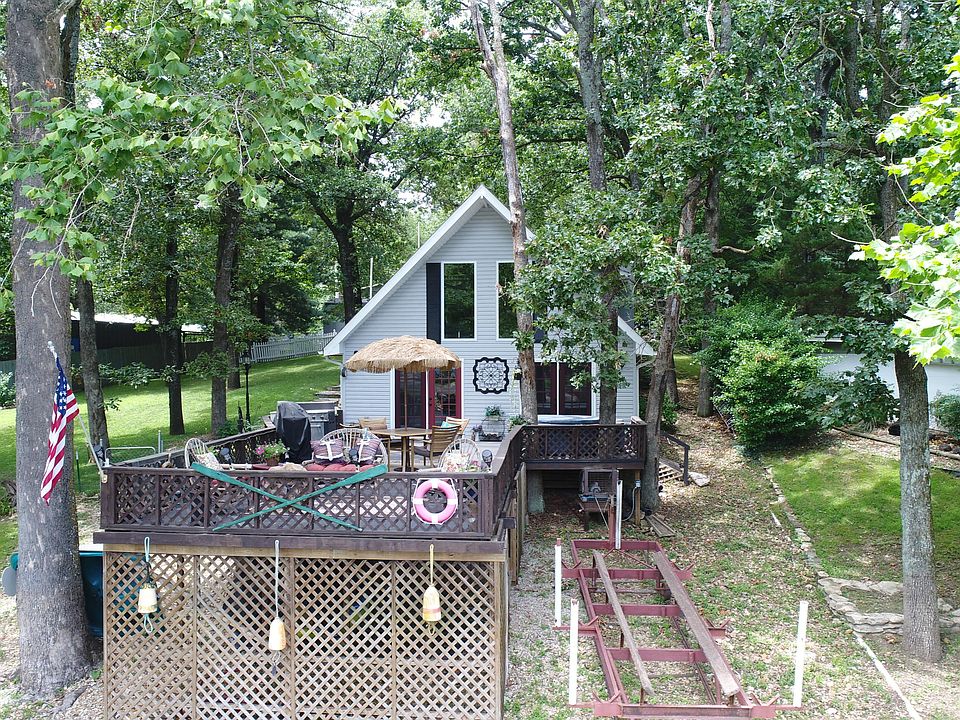 SUMMERTIME BLISS...Lake home, 3b/3b plus a loft for extra sleeping or an office, large party deck, immaculate condition; boat dock plus rail system, good water, gentle slope, oversized 2-car gar, RV stge, garden, fenced yard. Partially furnished. Excellent neighborhood. $379,000.