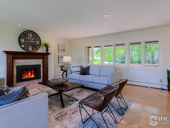 Enjoy beautiful mountain views in this updated ranch on .68 acres with a walkout basement, 3+ car garage & an owned 7.56 kW Solar PV system. Welcoming front porch overlooks wonderful front yard & wildflower beds. Step inside to a spacious living rm w/fireplace & snow-capped views. Walls of Windows bring the outdoors in & French doors lead to the beautiful deck where you can relax & enjoy the serenity. Remodeled kitchen features 52-in cherry soft close cabinets, granite counters, undermount sink, SS appl, gas range, & Cavalier range hood. Kitchen opens to the sunny dining room w/glass doors to deck for outdoor dining & entertaining, all w/views. Light-filled & airy primary BR addition is a serene sanctuary with gorgeous Flatirons & mountain views, even from the bed! The luxurious primary bath is beautifully remodeled & accessible, w/heated tile floors, dbl sinks, maple cabinetry, oversized walk-in shower w/separate tub, addl laundry, & large walk-in closet. 2 additional very nice sized BR on main level with one currently staged as an office. Downstairs, you'll find a bright, walkout lower-level w/French doors to the covered patio, spacious family room w/built-in shelving, fireplace & classic brick hearth, cork flooring, & fully above-grade windows. There is an updated full BA, 3 fully conforming BR, plus second kitchen area w/sink, cabinets, dishwasher, refrigerator, and front-loading washer & dryer. The picturesque yard w/views of Longs Peak has raised garden beds, flowers, mature trees, and RV parking with a view. Fantastic third garage bay extension, EV charging, built-in work sink, refrigerator, and heated studio space, ideal for hobbyists or artists. Addl storage under garage at NE corner of home. This home has room for all your toys! Wonderful Lake Shore Estate neighborhood near Baseline Reservoir & Dry Creek trail. Lake membership eligible. Enjoy this quiet country setting just moments from E Bldr Rec Center, shopping, dining, & all that Boulder has to offer.