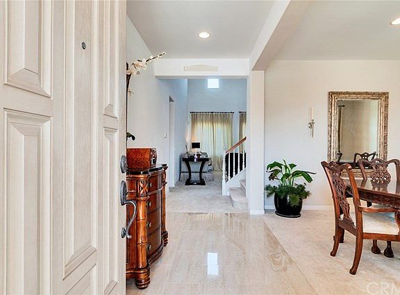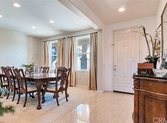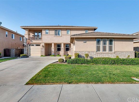 This stunning turn key home sits in the heart of Eastvale with 5 bedrooms at 3 bathrooms and over 3,306 square feet of living space! The downstairs bedroom and full bath is perfect for guests or family. The dining room is spacious and is located just off the kitchen. The living room boasts a vaulted ceiling that lets in an abundance of natural light. The open layout of the family room, eating area and the kitchen gives a comfortable home feel. The kitchen features beautiful porcelain tile flooring along with a walk in pantry, double oven, microwave, cooktop, large island with bar and a vast amount of storage. Upstairs the immense master Suite has two closets -a mirrored closet in the hall to the master bathroom along with another walk in closet off the bathroom. The dual sinks and soaking tub along with the porcelain tile floor make this room majestic. Two of the bedrooms share the balcony that sits over the front of the home each with private access. The hall cabinets provide ample storage. The last bedroom is more private at the end of the hall. The hall bathroom has dual sinks and a separate area for the shower/tub. There is also two separate garages, with parking for 3. The backyard has luscious greenery with a built in patio cover off the kitchen and eating area perfect for entertaining. Enjoy the mountain views from both the balcony and master suite. Located near award winning schools, parks and a great shopping and No HOA make this the home for you!