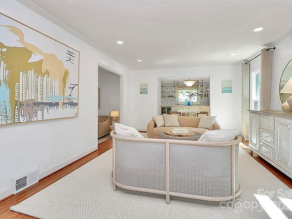 Nestled on a corner lot, this beautifully renovated white-painted brick ranch is a true gem. The fully fenced backyard offers a private oasis with lush, landscaped gardens, a pergola, an extended concrete patio, and a stock tank pool, creating the perfect backdrop for outdoor living and entertaining.Step inside to a sophisticated interior, featuring a updated kitchen, white quartz countertops and a single-basin farmhouse sink. The adjoining dining room boasts a custom wet bar with a beverage fridge and a large picture window that floods the space with natural light.Relax in the cozy den with custom built-ins, or unwind in the spacious primary suite, complete with dual closets, an expanded, remodeled en-suite bath.This 3-bedroom, 2-bath home is not only beautiful but also functional, with plenty of storage and custom built-ins throughout. Located minutes from Cotswold andSouthPark and this home offers convenience and charm in one of Charlotte’s most desirable locations.
