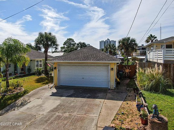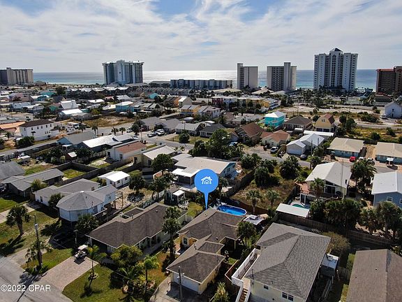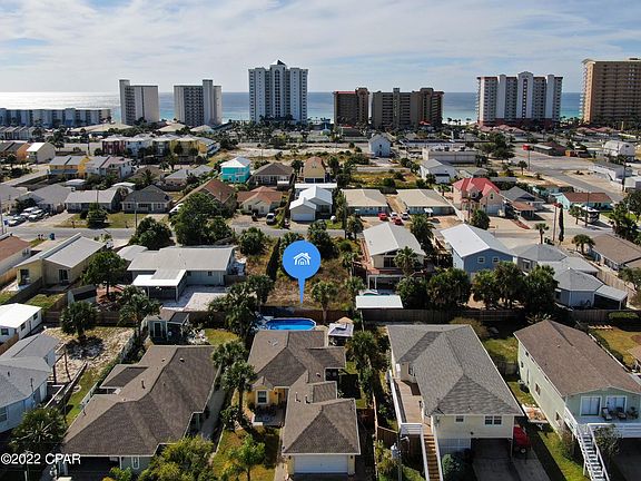 This 3 bedroom, 2 bathroom Beach home w/private pool is a MUST SEE! Conveniently located a short stroll from the beach, near Restaurants & St Andrews Bay. Updates include: new 30 year shingle roof added in 2018, hurricane windows, new pool added in July, freshly painted interior, new sink & faucet, new floors in bedrooms, & 20K paid to connect to public sewer. Home sits on a large well-landscaped lot w/parking for four vehicles. On days you'd rather stay home, enjoy a refreshing dip in the pool or lounge in the hot tub. The entire backyard is completely fenced in providing additional privacy & w/two separate seating areas is perfect for entertaining! Home sold as furnished with artwork, dining table/chairs, coffee table and personal items excluded. Call today to schedule a showing!