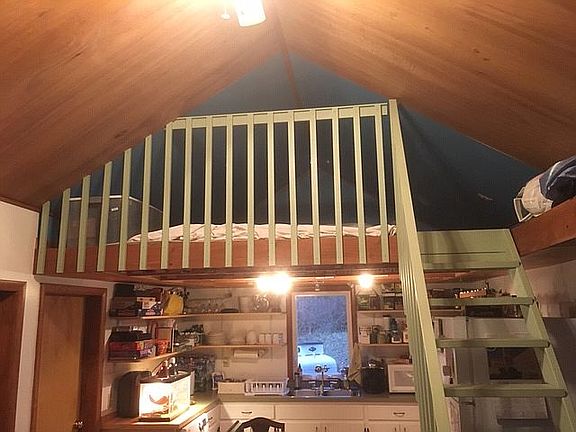 Great for year-round living or seasonal. Completely renovated in 2009 to include 2 bedrooms, 1 bedroom loft, large open kitchen with eating area, large family room, 1 bathroom, wood burning stove. Wood-plank flooring in several rooms. Internet service. Cable and telephone are available. Propane heat. Each heater has programmable thermostat. On-demand propane-fueled hot water heater. Appliances include refrigerator, propane stove/oven, energy-efficient combo clothes washer/dryer. Security cameras in- an outside. Well water with 1,000-gallon tank. Stone driveway. Additional buildings include older cabin, and former outhouse turned storage. Property has fresh-water stream running in front, a large pond, 43.1 acres in total most of which are hardwoods. Professionally designed trails for hiking and outdoor enjoyment.
