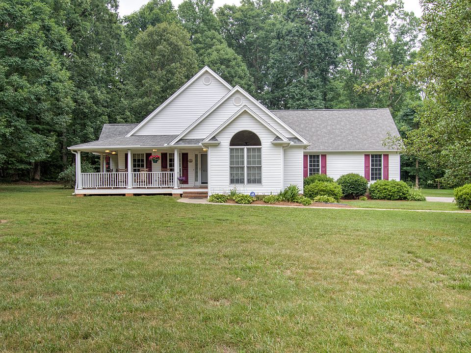 Private Country living yet close to City amenities! This "hard-to-find" one story home features a wrap around front porch, spacious Great Room with cathedral ceilings; updated Kitchen with granite countertops & lots of cabinet space; Master Suite with a tray ceiling, walk-in closet, jetted garden tub & separate shower; separate Laundry Room with granite countertops, tile floor & cabinets; Sunroom with beautiful hardwood flooring overlooks deck & large private back yard-great for outdoor living...Low county taxes! 100% financing/USDA eligible!