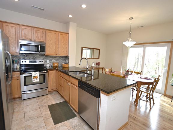 Welcome to this stunning end-unit townhome with serene views of the woods and ponds, offering complete privacy with no neighbors behind the home or on one side. The interior features updated flooring, elegant granite countertops, a convenient kitchen pantry, and stylish raised panel doors. The three bedrooms are all located on the 2nd level along with the laundry area. Spacious owner's suite with Large walk-in closet and oversized bathtub. The finished garage includes a durable epoxy floor. Step out to your private patio and immerse yourself in the peaceful scenery, with abundant wildlife by the pond and surrounding woods.