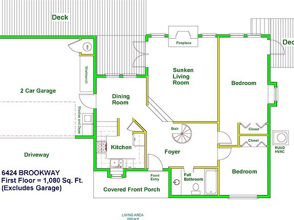 Total Square Footage = 1,610 (1,080 sq. ft. on first floor and 530 sq. ft. on second floor); please see attached floor plan images.