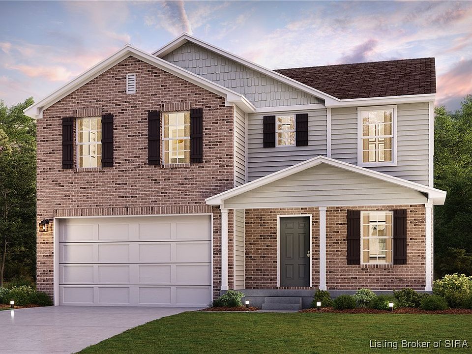 Welcome to your dream home in the Woods of Heritage Hills Community! The stylish Essex Plan this is a 2-story gem offers a spacious open layout perfect for entertaining and everyday living. The inviting kitchen features elegant cabinetry, granite countertops, luxury vinyl floors and stainless steel appliances, including a range with a microwave hood and a modern dishwasher. The main floor also includes a versatile flex room and a chic half bathroom for guests. Upstairs, unwind in the tranquil primary suite with a en-suite bathroom and a generous walk-in closet. Three additional bedrooms with walk-in closets share a full bathroom. A cozy loft and a convenient walk-in laundry room enhance functionality. Energy-efficient Low-E windows, A/C, and a one-year limited home warranty complete this exceptional home. You'll also love a prime location convenient to Louisville amenities and attractions. Lanesville is also home to the annual Lanesville Heritage Weekend Festival. Discover all that Woods of Heritage Hills has to offer. Special Feature at Woods of Heritage Hills: Sod included in the front yard!