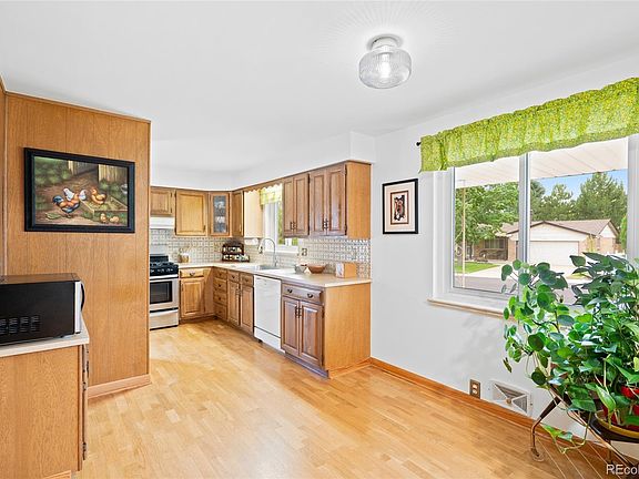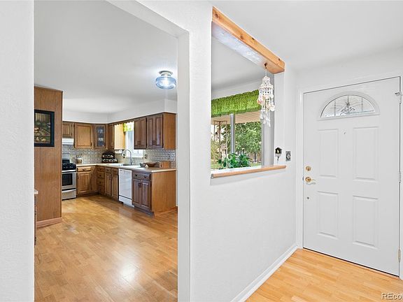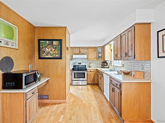 Step inside 6424 Newland Street and find a gem from the 1950's. Lovingly maintained with so much original charm and detail, this home invites you inside the moment you open the door. A large eat in kitchen with lovely natural light and a big pantry complete with a built in black and white television (still works!) from 1957 has space enough for a table, or perhaps build a banquet in the corner for long chats while cooking and baking. The main level dining room is gigantic and ready for your dinner parties this fall and leads into the great room with vaulted ceilings and a fireplace to cozy up when it gets chilly. The main level also boasts a full bath and three bedrooms - the primary bedroom complete with an additional half bath. The entire main floor has lovely wood floors in fantastic condition. Downstairs is a full basement with two good sized non-conforming bedrooms, a full retro blue bathroom in impeccable condition and a large entertaining area/great room. A full laundry room and ample storage space rounds out the downstairs. Outside you will find a detached one car garage with tons of storage to hold lawn and winter gear. The backyard is private with a covered patio and area for gardening. Out front you have a covered patio to sip coffee and join the neighbors in socializing. Just 2 1/2 blocks from Secrest Rec Center and pool, and just about a mile from Old Town Arvada, this area has so much to offer for shopping, dining, and a quick drive to downtown or the mountains. *Buyer to assume solar lease with SunRun