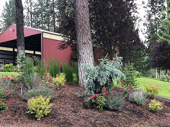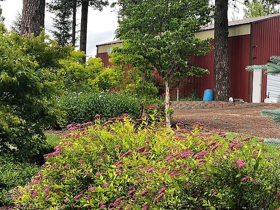 2 Story plus full daylight basement. Beautifully landscaped with water feature and fire pit near patio. Huge garden area with orchard. 750' well produces a high volume of cold clean water. Natural Gas, High Speed Internet, 2 large shops, 30X42 and 36x48. One shop has office space on 2nd floor. Seasonal creek with large pond. No Realtors Please!