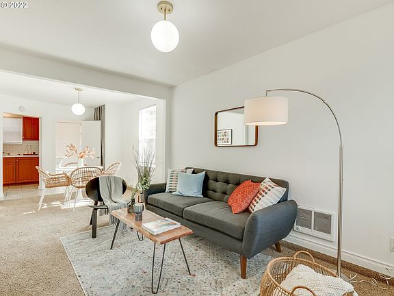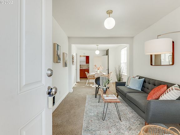 Charming one level ranch in convenient location. Close to shops/coffee/mass trans. LR/DR combo w/carpets. Full ba w/subway surround. Kit w/range, fridge + access to backyard. Attic accessible from outside w/tons of addl storage. House has parking next to the garage + shares driveway access w/duplex property. Taxes TBD as lot just separated from duplex next door. [Home Energy Score = 5. HES Report at https://rpt.greenbuildingregistry.com/hes/OR10205782]