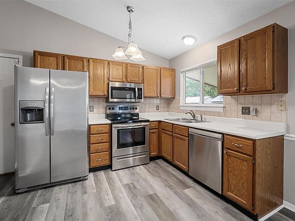 Welcome to this move-in ready ranch home that checks all the boxes. Step inside to a welcoming vaulted family room, perfect for relaxing with loved ones or enjoying quiet evenings in. The vaulted kitchen is a true highlight, featuring plenty of cabinets with convenient pull-out drawers, a tasteful tile backsplash, and stainless steel appliances. Adjacent to the kitchen, is the vaulted breakfast room with a lovely space for enjoying meals with family. The master bedroom, with its own full bath, provides for relaxation. Outdoor living is a pleasure with the covered patio, ideal for entertaining or simply enjoying the fresh air. The level fenced-in yard ensures privacy and a safe space for outdoor activities. The basement boasts a full bathroom, a sleeping room or office, additional open living space, and plenty of storage. Conveniently located providing easy access to Highway 364 and Hwy K, just minutes away from Hwy 70 and Hwy 40, enhancing your daily commute and travel options.