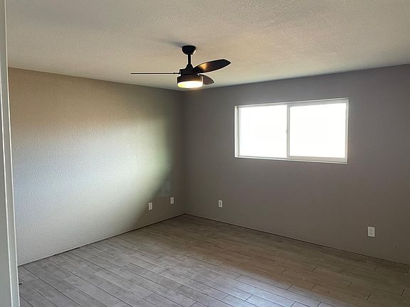 Fully remodeled home in 2024 with new paint, new dual pane windows, new wood looking porcelain floor, new bathrooms, new white shaker kitchen cabinets, new quartz countertops, new stainless steel appliances, new ceiling fans, new HVAC unit, new roof, and a big fenced in backyard with a patio.