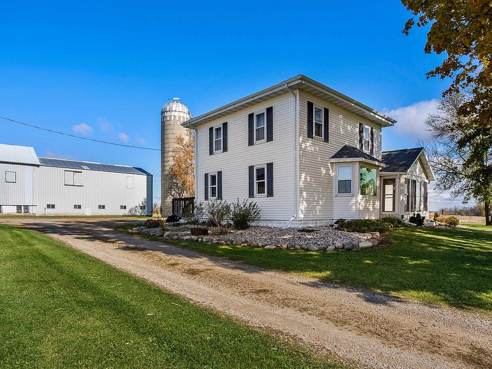Imagine sipping your morning coffee on the front porch with the only interruption being the sound of livestock in the distance and the Fox River flowing a few hundred feet away. There is a barn, machine shed, and silo on the 5+ acres. Inside the house, you will see all of the updates that have been done. Nearly the entire house was given a facelift. There is fresh paint and updated lighting throughout. The living room has tons of natural light and the family room has a pellet stove to keep you warm and cozy on those cold winter nights. The full bath has a spacious walk-in shower. The first of four bedrooms is conveniently located on the first floor. The remaining three bedrooms are located upstairs. Per tax bill, zoning is Agricultural and Other