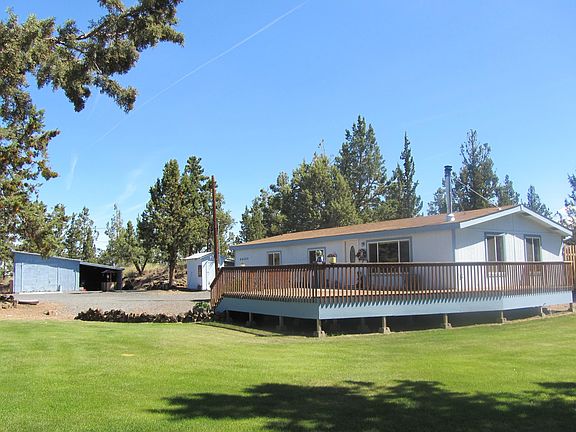 Paved country lane leads to this single-level paradise. 3 bedroom on 4.2 treed acres with mountain views! Property includes garage-shop-carport building, plus storage shed. Served by Avion Water, 2 acres Swalley Irrigation Water, and paved road. Situated close to shopping, restaurants, city services. Located close to town easily accessible to Tumalo, Redmond, Sisters, and airport. Features large front deck for outdoor entertaining. Pirturesque property in scenic treed area with hills, rock outcroppings, lovely homes, where pets and horses are welcome. Many recent improvements including furnace, heat pump, woodstove, hot tub, windows, front & back doors, and sliding glass door! Well-lit shop boasts concrete, power, attached carport. Room for RV parking! Everything is ready for you to make this your own. Enjoy privacy and country lifestyle close to town. Call now to view this warm, welcoming, spotless manufactured home.