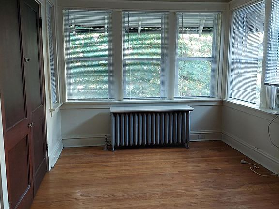 Large 1 bedroom 1 bath. Living room, dining room, kitchen, sunroom. Oven, range, refrigerator, window air conditioners, radiator heat. Coin laundry in basement. Cat port parking in rear. Hardwood floors throughout. 1 year lease. Pet application. $200 nonrefundable pet fee. $200 nonrefundable processes fee. $41 credit application pay online