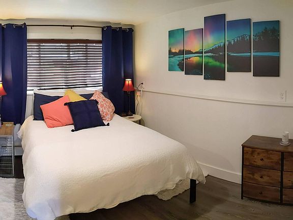 Fully furnished, private, recently renovated 2 bedroom guest apartment. Very cute, bright, stylish, and inviting space with comfortable ambiance. Custom touches make the 420sqft suite spacious and modern. Flooring is gray wood-vinyl throughout with rugs for comfort and atmosphere. Bathroom has a walk-in tile shower with cedar ceiling and waterfall showerhead, and an all-in-one 2.3 cuft LG washer/dryer. Basic amenities provided upon move-in: shampoo, conditioner, body wash, body lotion, Kleenex, TP and wet wipes, body towels, hand towels, and washcloths, cotton swabs and rounds, hand soap and sanitizer, variety feminine products, makeup remover towelettes, laundry detergent and softener, iron, ironing board, and drying rack. There are also cleaning supplies, a vacuum, broom, mop, and bucket available in the apartment. Main bedroom has a full-sized Bear mattress and closet with full length mirrors. Furnishings included are: two nightstands, two lamps with soft white LED lightbulbs, digital clock with fully dimmable red lettering, opaque blinds and blackout curtains, bedside rugs, and a small dresser. There is a laundry hamper with cloth liner and a shoe rack in the closet. Second room is flexible and can function as either the living room or a second bedroom as needed. In the room: a couch that converts to a twin bed, a 3-inch memory foam topper available if futon to be used in bed mode, all bedding for bed mode, opaque blinds, a 32" TV, DVD player with Netflix, variety of games books and DVDs, a puzzle, CD player and variety CDs, yoga mat, blankets and throw pillows, and a small shelf with drawers that can be used as a dresser. Workspace is in the landing area between the two rooms and the kitchen. Desk is 39"Lx16.5"Wx30"H with an office chair. Included: desk lamp with soft white LED bulb, basic variety office supplies (pens pencils highlighters paper clips page markers stapler and staples paper etc), Bose Soundlink II bluetooth speaker with microphone, faux-fireplace space heater, shelves with drawers for organizing, air filter, desktop organizer, laptop riser, computer screen with HDMI cord, wireless keyboard and mouse, GCI 1-GIG Unlimited internet, and basic charging cables. Kitchenette is well stocked with everything needed to make and serve a meal for up to 4 people. The table is a small drop leaf table that is normally set up for 2 but can accommodate 4 chairs when fully expanded (all 4 chairs are part of the set and are included). In the kitchen: single basin sink, mini fridge, electric countertop range with two burners, countertop oven that fits an 8x8 pan or cookie sheet (both included), 5 qt crock-pot, cooking and baking utensils, stick blender, tupperware, pots and pans, cutting boards, electric wine opener, dish cloths and towels, cloth napkins, dish soap and drying rack, hot pads, and of course plates bowls silverware cups mugs glasses and wine glasses. There are multiple tea and coffee options: coffeemaker, electric kettle, French press, pour-over, variety tea bags, tea balls etc. Kitchen has French doors opening to the patio. Patio includes small propane grill with propane and grill tools. Outside is a fully enclosed yard with privacy fence, a fire pit with ample firewood and camp chairs, a picnic table, patio, and storage shed used for supply back-stock (apartment is vacation rental during the summer) and can be used if arranged. There are two off-street parking spaces and plenty of street parking. For your furry friends we have the following available upon move-in: dog bed, dog water and food dishes, doggy doo-doo baggies, cat food and water dishes, kitty litter box with liners litter and scoop, litter receptacle, and odor eliminating cleaning products. For children we have a baby gate available upon request. Applications submitted without first reaching out to property owner will not be accepted. Applicant Screening Criteria: every adult 18+ to live in the house must apply, rent amount can be no more than 40% of monthly income, credit score minimum 600, clean background check with no violent crimes, no previous evictions or late/non payments, positive reference check confirming the above. Please message with any questions. Included with rent: Utilities, garbage/recycle, unlimited high speed internet, snow removal, yard mowing, and furnishings. Max 2 pets with additional $300 refundable deposit and additional $25/mo rent per pet. 6-Month Lease desired, Month-to-Month Lease available for additional $50/month rent.