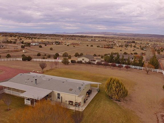 Amazing views from this beautifully maintained home on 2 acres. 3 bedrooms, 1 full bath and a split bath rooms in master. Perfect set up for with his and her baths one with garden tub other with shower. Spacious bedrooms and large walk in closet in master. Plenty of counter space and cabinets in the large bright kitchen. Gorgeous corian solid surface counter tops. Open large living room with wood fireplace. Wrap around covered porch and patio to take in those breath taking views. Detached 4 car garage with plenty of area for work area. Garage is set up with ''garage kitchen'' complete with countertop and sink. Level lot completely fenced, great horse property very near state land.