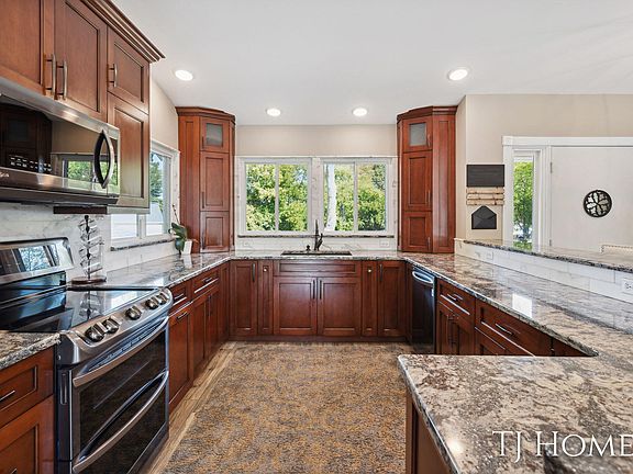 Welcome to this beautifully updated ranch, boasting over 3,500 square feet of luxurious living space on a sprawling 10-acre property, boasts 5 beds, 3 baths, complete with an inviting inground pool, and three outbuildings. The kitchen, renovated just 5 years ago, features a stunning marble island, soft-close doors, hand-stained custom cabinets, and a marble tile backsplash. Adjacent to the kitchen, the dining room showcases a convenient built-in coffee bar, perfect for entertaining guests. Retreat to the primary luxury suite, where you'll find a tranquil soaking tub, rain shower, dual sinks, and custom-built closet ins for added convenience. The main floor offers an open layout, three additional bedrooms, and a gorgeous full bath. Venture downstairs to discover a fully equipped lower.. level with a second kitchen, direct access to the garage, ample storage, and an office/bedroom (or even your own walk in closet) designed for an in-law suite with its own entrance and accessible bath featuring a walk-in shower. High-end Luxury Vinyl Flooring (LVP) with foam base sets a sophisticated tone throughout. Outside, the 20 x 40-foot pool, refinished just 5 years ago, promises endless hours of enjoyment. With an attached two-stall garage, this property offers the ultimate blend of luxury, comfort, and outdoor recreation. Additionally, three outbuildings offer versatility, including a 36' x 52' building with a free-standing wood stove and concrete floor, perfect for hobbies or storage. The property also features 2 dedicated buildings for furry friends or your own small farm with pasture! There are two drain fields for added convenience. Don't miss the opportunity to make this your dream home! Schedule your showing today. ADDITIONAL UPDATES: Roof on the house is 3 years old, New furnace was installed in 2024, all receplacement windows in 2015 and kitchen completely remodeled in 2019. POSSESSION: 60 days after close.