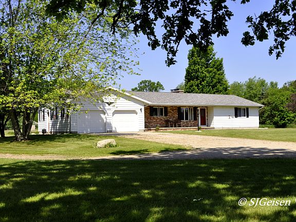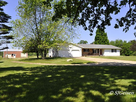 ''I'd like to buy in the country but I can't find one that's affordable''. Here it is and with 10 acres too!! Lot's of space and room to expand with this 3 bedroom, 2.5 bath ranch offering 1849sq' on the main level. A long list of features including: front den or sitting area, large living room with bamboo flooring and brick wood burning fireplace, kitchen with center island work area and appliance package plus dining area with sliders to large covered deck overlooking the back yard/acreage and sunsets. The full unfinished poured wall basement offers plenty of storage or space to expand the living area if desired. Additional amenities include: 24 x24 attached garage, 30x40 pole building with concrete floor and 12x14 lean to, 4'' well, 5 year new roof, main floor laundry room and priced rig