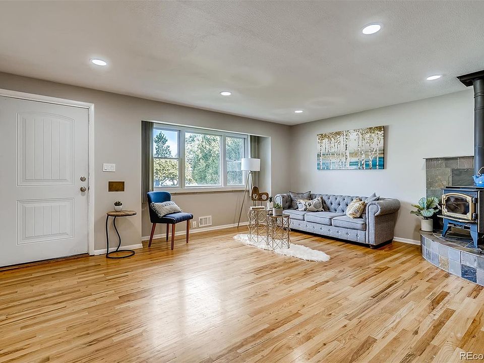 This Lamar Heights ranch is less than 1.5 miles to Olde Town's shops, restaurants, festivals and light rail station. Enjoy the morning sunrise in your private fenced-in front yard, great for the little ones or fur babies to join. This ranch welcomes you with a beautiful wood burning stove, perfect to snuggle up on the cold Colorado evenings. There is a lot of natural light coming from the big east and west facing windows as well as the three solar tubes with solar nightlights. The eat-in kitchen, with new stainless steel appliances, connects to a covered patio where you can enjoy the sunset while listening to the trickling water feature. The basement boasts a large entertainment space with a 3/4 bathroom and has a fourth, non-conforming bedroom with a secret rolling bookcase. Carefully planned irrigation makes yard maintenance an easy task. The whole house fan cools the house down in the evenings and reduces the amount of A/C you use throughout the day. Call this move-in ready ranch, home!
