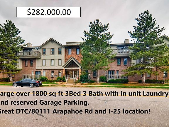 Great DTC location near Arapahoe Rd and I-25. Walk to the light rail. Large 1827 sf 2 story condo with underground reserved parking. Community pool. Award winning Cherry Creek Schools. 3 Bedroom 3 Bathroom In unit Laundry and garage parking for Only $289,000!