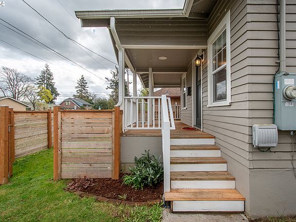 Simply Darling Bungalow in Popular SE Portland Neighborhood. This cutie was completely remodeled in 2015 including new kitchen, bathrooms, furnace, plumbing, electrical, sewer line, windows, roof, and 785 feet of added space which includes gorgeous, spacious master suite. No need to lift a finger. Move in and enjoy your new walkable/bikeable neighborhood just steps from Mt. Scott Park, Woodstock shopping and eateries and public transportation. The bright and open living/dining/kitchen space is perfect for gathering and hanging out. Remodeled kitchen shines with stainless steel appliances, quartz countertops, gas range, new dishwasher, new built-in microwave and eating bar for extra seating. Don't miss the clever pantry next to the kitchen! The welcoming covered, wrap-around front porch looks over a fenced front yard and can be used as an extension of main living space on lovely days. Three private-feeling bedrooms have ample closet space. Laundry on main for convenience and unfinished basement for storage. Detached garage for your hobbies, toys or a small car. Sweet side patio and low-maintenance sunny backyard perfect for gardening, fun and relaxing. [Home Energy Score = 5. HES Report at https://rpt.greenbuildingregistry.com/hes/OR10226393]