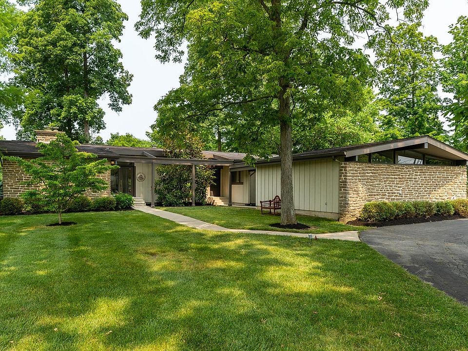 Rare opportunity in the heart of Indian Hill, close to schools and parks. Beautiful, classic mid-century modern home with open floor plan, vaulted ceilings, and natural light throughout. Tastefully updated with many desired features including a master suite with large bathroom and walk-in closet, modern kitchen with high end appliances and two fireplaces. Expansive windows, skylights, inviting screened-in porch and large deck bring the outside in. Situated on level, one acre tree-lined lot.