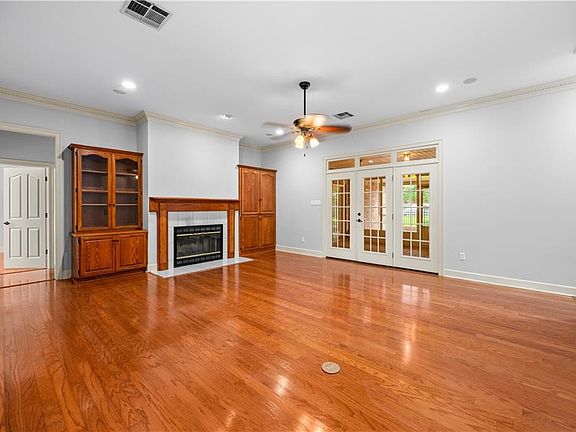 Moving is going to be a proverbial "breeze" if this home is your new address! From the easy-keep hardwood, brick and tile flooring to the freshly painted light gray neutral colors, this Tennyson Oaks home is top of the list move-in ready. The manicured front yard with its appealing landscaping sets the stage for this Acadian-styled single-level 4 bedroom, 2.5 bath home. Welcome your neighbors and friends to a fun casual gathering in the spacious open kitchen with its dining area, oversized granite seating and serving island, loads of counter and cabinet space and nearby guest bath. For more auspicious events, your guests will enter an impressive foyer and segue to the dining room highlighted by tray ceiling and large windows or to the oversized den/living area with French doors connecting a screened patio/porch area perfect in all kinds of weather and for every sports season! All bedrooms feature hardwood flooring, neutral paint colors and plentiful closet space. The roomy owners' suite with its tray ceiling, direct access to the screened porch, and double walk-in closets adjoins an expansive bath area with jetted soaker tub, double vanities, separate shower and more. Lush green grass and selective plants highlight the wrought-iron and privacy fenced backyard and open brick patio. Double garage with attached storage room and driveway space will allow plenty of parking area for extra vehicles. Sizeable laundry room includes storage area, closet and utility sink. Other amenities include security cameras on back screened porch, speakers in den ceiling, kitchen with stainless oven, disposal, electric range, microwave, dishwasher and pantry. The architectural shingle roof was installed 4 years ago. Gas hot water heaters and gas double heating units. Kitchen cabinets being painted week of July 22, 2024