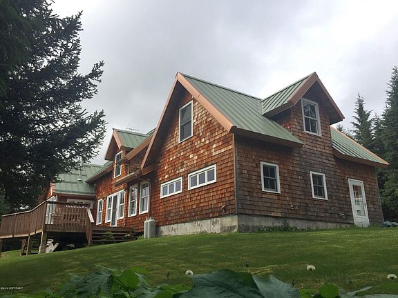Stunning Douglas Fir timber-frame home on 2.32 wooded acres with beautiful ocean and mountain views. Just minutes from downtown Homer yet private and surrounded by natural beauty. Exquisite craftsmanship shines throughout this lovely four bedroom, two and a half bath, 4,200 square foot home. With multiple living areas, there is plenty of space for a family room,