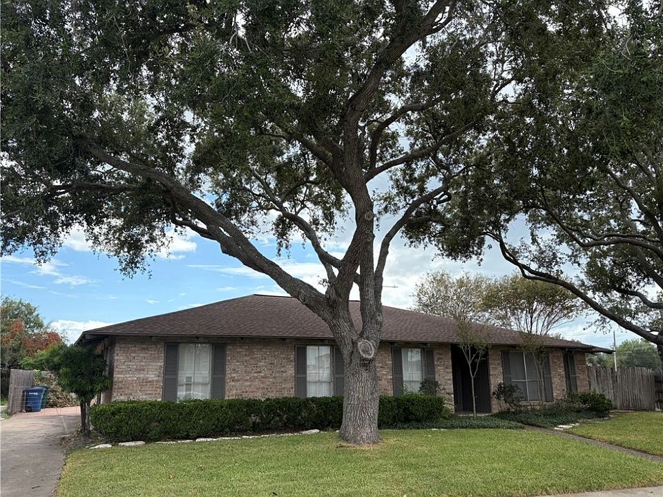 Corpus Christi Country Club one story home with 5 bedrooms, 3 baths and a 2 car detached garage (rear), 3,365 square feet and 4 sides brick. Sits in a quiet cul de sac with no thru traffic. Living room offers cathedral ceiling and fireplace. Tile flooring, Wood , no carpet. Kitchen has all the amenities including granite counters lots of cabinets, breakfast area, built in bar sink and buffet. Separate dining room has hardwood floors and natural light. Main bedroom suite is oversized with fireplace with room for a sitting area. Bath includes a shower and separate tub with large walk in closet. 2nd main bedroom has updated tiled shower, double vanity and walk in closet. Enjoy the backyard on your large concrete patio and side yard. You'll love the mature Oak trees in the front yard which provides lots of shade.