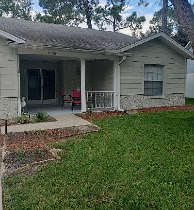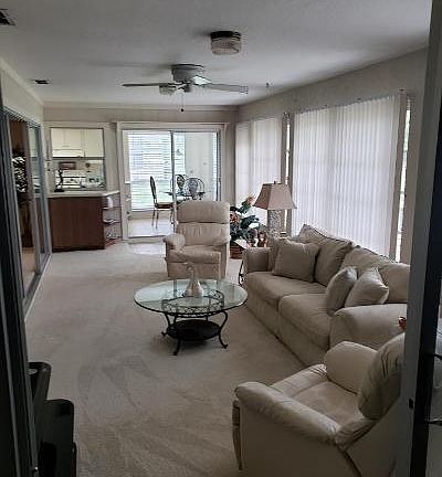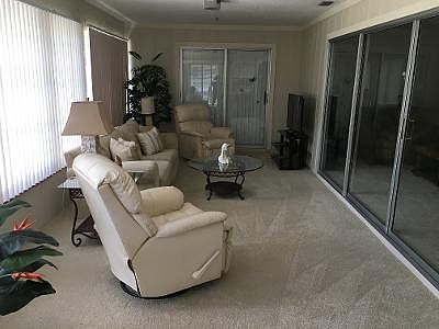 This charming 2/2/2 Oakmont Model Home in the award winning Timber Pines 55 + community is beyond cozy...All you need to bring are your golf clubs,Racket's and swim suits.. Freshly painted interior and exterior...New neutral carpets ...Eat in kitchen..The double front door opens to a spacious great room /dining room ..Open floor plan connects an enclosed heated and AC Lanai.. The home boasts 2 Master Bedroom Suites w/ walk in closets.Covered front porch and back patio for much earned R&R..Beautifully furnished & Nicely Landscaped.. 2 car screened garage with storage and golf cart included...This house won't last long...Call today!!
