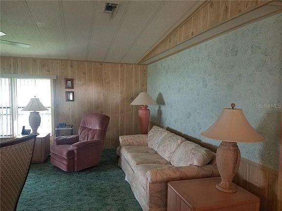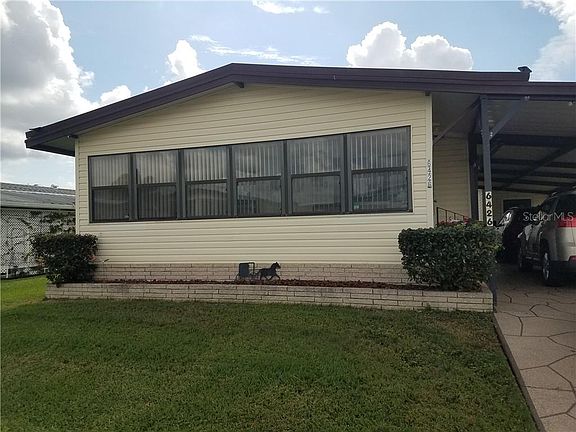 Move in ready furnished 2 bedroom 2 bath home located in a 55+ community. Formal living room and formal dining room, built in china cabinet, eating space in kitchen, enclosed Florida room. View of community pool and clubhouse. Community offers heated pool, clubhouse, shuffleboard court and RV lot. Easy commute to I-4, Orlando, Legoland, Disney and Epcot.