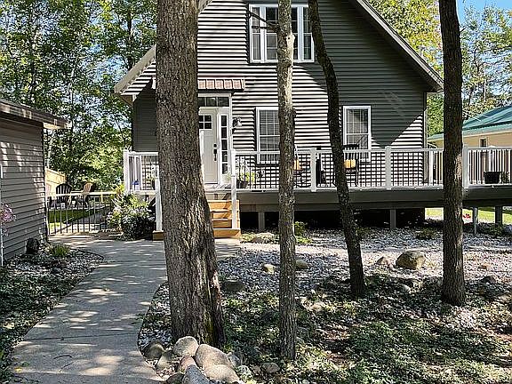1 1/2 story with full finished basement, 24x12 she shed with an a 3/4 bathroom and Murphy bed. There is an additional .33 lot across the street with a 24x36 pole barn with a 500 sq ft finished bunkhouse above. Several decks and large dock on 60 ft of frontage on Forest Lake in Alger!