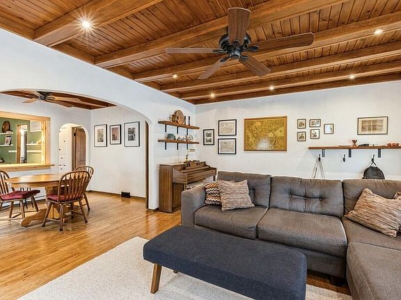 Presenting an immaculate 3-bedroom bungalow nestled in a charming neighborhood of Windsor Heights! This exceptionally well-maintained home boasts unique charm throughout, with beautifully restored archways, hardwood floors throughout the main living area and bedrooms, wood accented ceilings, and an inviting dining room. The living room is bright and cozy with natural light, while the updated kitchen delights with eco-friendly recycled glass countertops, a luxurious backsplash, and soft-close cabinets, making it an ideal space for culinary endeavors. A large butcher block bar connects the dining and kitchen spaces, which is great for entertaining. The main level has an updated full bathroom with tiled floors, along with two generously sized bedrooms offering comfort and convenience. Descend to the finished basement, where a family room and bedroom await, accompanied by a bathroom, large storage and laundry area. Adding further appeal, the property has an attached 1-car garage, a spacious composite deck ideal for outdoor relaxation, and a park-like backyard with a swing set. This immaculate home offers a blend of timeless charm and modern comforts, providing an inviting sanctuary to call home. Located within walking distance of Windsor and Cowles elementary schools, Colby Park, and many local restaurants and shops. There's also easy access to the Clive Greenbelt Trail via a paved walking/biking path. Sale contingent on sellers finding home of choice which has been identified.