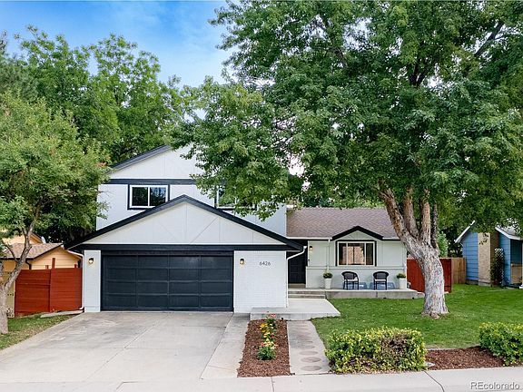 Searching for an immaculate residence in a highly sought-after Arvada neighborhood? Turn your vision of completely remodeled living into a reality in this impeccably crafted 4 bedrooms, 3 bathrooms Ralston Estates home! The remodeler ensured no detail was overlooked in creating a sophisticated space that offers comfort, style, and convenience. From its traditional split-level architecture with all new exterior paint to the striking open floorplan which now defines a complete and functional interior, this complete remodel is designed to impress. Upon entering, discover a combination of crisp, clean finishes and gorgeous white oak waterproof wood-based laminate flooring. Open and bright with exposed beams and vaulted ceilings that stretch 2 levels allowing for ample natural light creating a welcoming ambiance across every level. Whether you're unwinding or entertaining, the kitchen is the ideal spot to be with clean quartz countertops and white maple shaker style cabinetry tastefully pair with the huge multi-seater island to complete the culinary space. Recessed lighting casts a soft glow over the gourmet kitchen where Samsung stainless steel appliances await the home chef. The living room lends itself to more intimate get-togethers while greeting you with a floor to ceiling linear wood burning fireplace to keep you warm on those chilly nights. Hosting memorable dinners is a breeze with a dedicated dining area large enough to host a dinner party of 10 or more. After a tiring day, enjoy the carpeted bedrooms and the fully finished basement. The best among them all, the primary bedroom treats you to an ensuite highlighting all new finishes including an oversized and airy shower. The large backyard includes new landscaping and a newly stained fence securing all the kids at play.